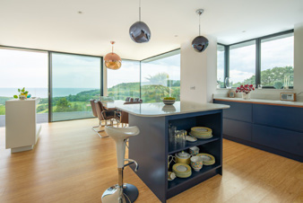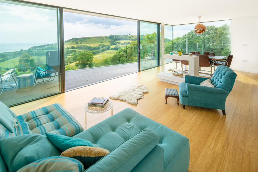 We love the fresh white décor throughout the home. This combined with the natural bamboo, the floor to ceiling windows, and magnificent views of the Dorset countryside has created Mark and Julia a spectacularly unique home.
