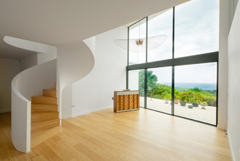 The stunning spiral staircase has also been clad using the same bamboo floor and finished with matching natural strand woven bamboo stair nosing. The flooring flows throughout the house and really blends with the stunning views and colours of the great outdoors. We feel that the Natural coloured bamboo was the ideal choice for this property. Strand woven bamboo is a durable and hardwearing floor, which is perfect for the open plan areas. The flooring is easy to look after and keep clean, and due to its stability, it will be able to cope with the fluctuations in temperature from large windows and doors throughout the home.