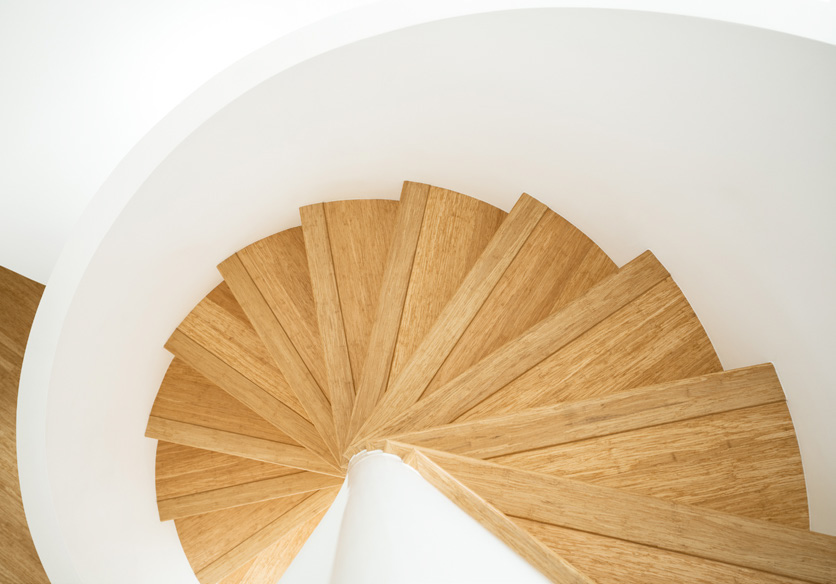 Here the bamboo stair nosing has been used to finish off this stunning spiral staircase.