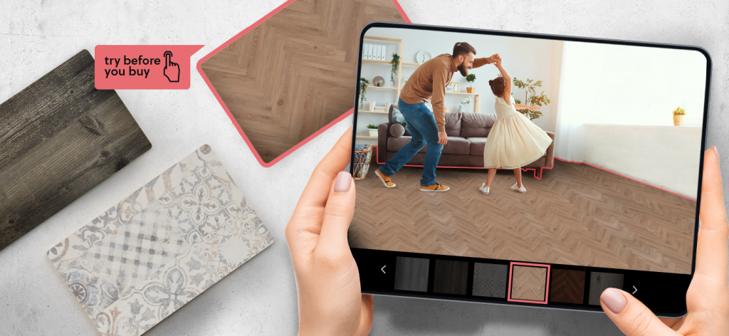 Floorfit lets users choose a floor from hundreds of different options. They can also select various floor types and colours, use the built-in filters to find something specific, and even try out different laying directions and patterns.