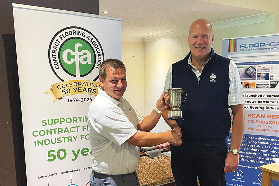 Blessed with fair weather, the golf competition ran concurrently on the Bruce and the Montgomery courses both of which played well and after completion of their rounds the golfers enjoyed a meal prior to the prize giving. The winner of this year’s competition was Paul Godfrey (Genesis Global Systems Ltd), with David Brady (RJM Flooring) in second place and Graham Sey (Tarkett Ltd) in third place.