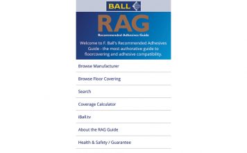 F BALL and Co high-performance water-mix smoothing underlayment, used alongside pressure-sensitive vinyl adhesive