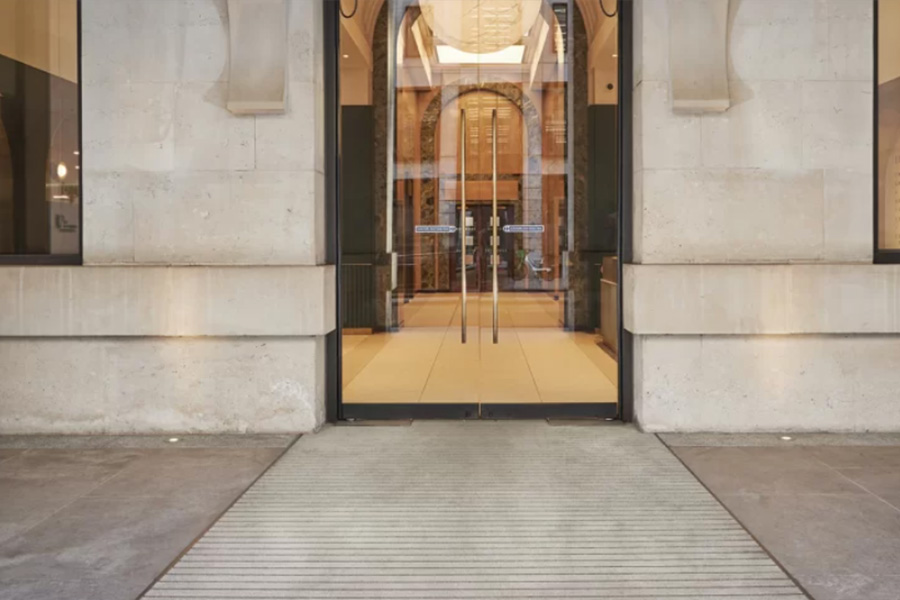 As any keen Monopoly fan will tell you, Pall Mall is just about as prestigious as a high-street can get! This striking stone building with a beautifully designed interior mixes the best of both traditional and contemporary styles. As an internationally known address within the very heart of London’s West End, the location is steeped in prestige and elegance. The building itself is a leading example of architectural classicism. A stunning stone structure designed by Donald McMorran; 100 Pall Mall really stands out within the heart of the West End. Such a building must leave a lasting first impression, so what better way than an external INTRAsystems entrance matting system?