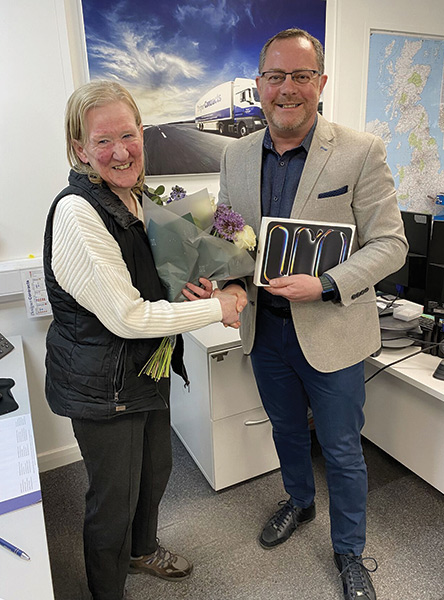 Mavis Nelson, office supervisor with the Designer Contracts northwest region and Neil Sartain, warehouse manager with the central distribution team, each received an iPad in recognition of 20 years’ service with the company which is also paying for a celebration team lunch in their regional offices.