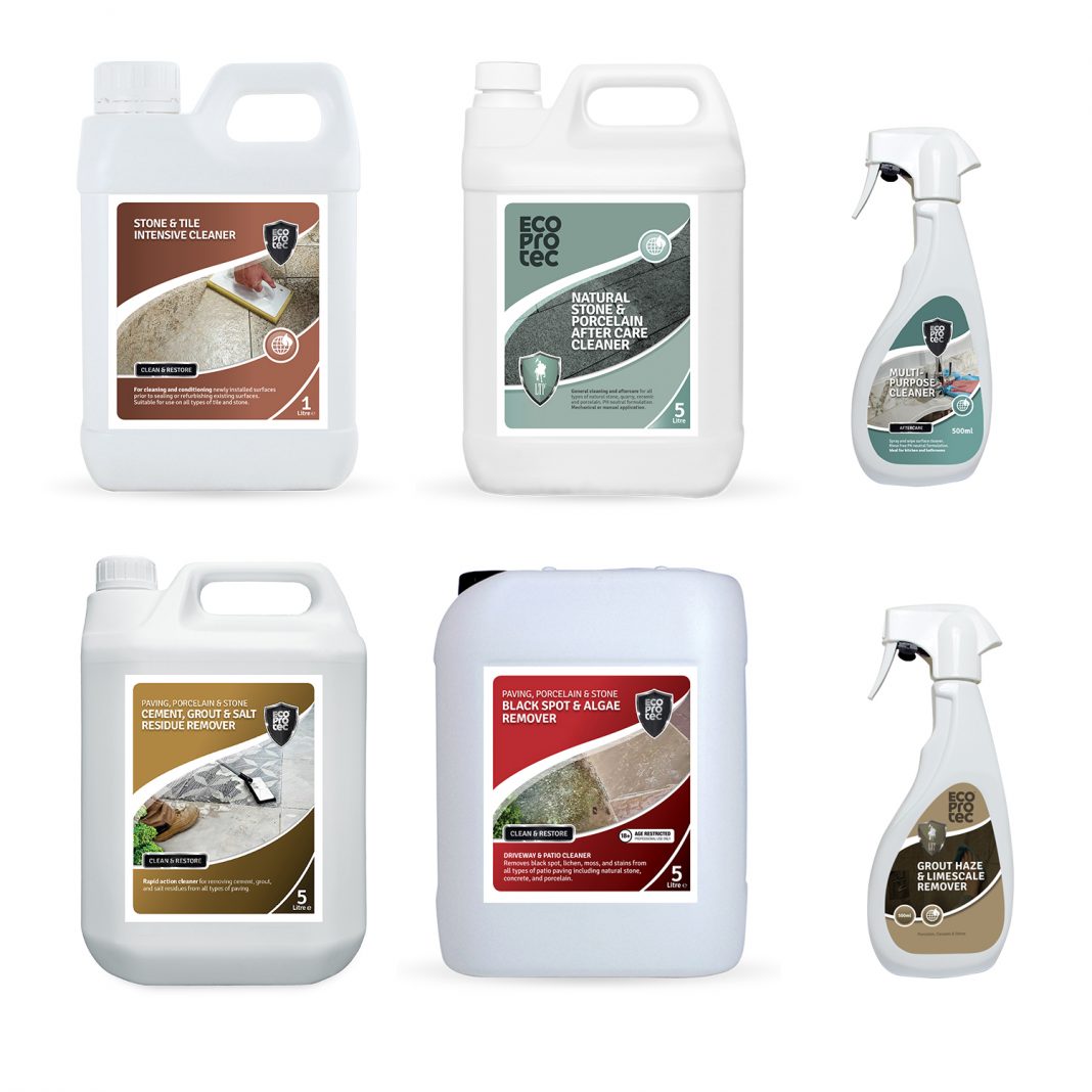 Outdoors, ECOPROTEC® Black Spot & Algae Remover targets an autumnal build-up of slippery organic residues – including black spot, lichen, moss and algae – restoring natural stone, concrete, brick and porcelain in as little as two hours. Other external cleaning products include ECOPROTEC Joint Residue Remover, Intensive Cleaner, Rust Stain Remover and Iron Stain away.