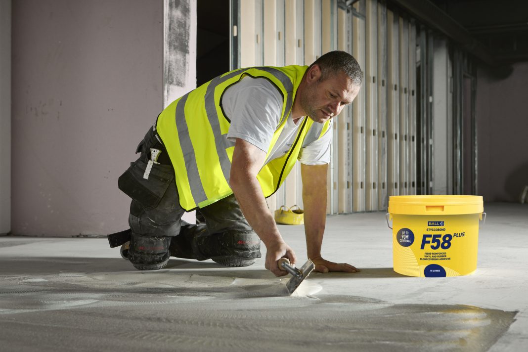 Options are also available where contractors face considerable time pressures and a moisture resistant or temperature tolerant adhesive is not required. F. Ball has recently launched a fast-track, pressure sensitive adhesive for LVTs, Styccobond F58 PLUS. Developed as a ‘transitional’ adhesive, Styccobond F58 PLUS transitions from a wet-lay adhesive when initially applied to a subfloor to become fully pressure sensitive.