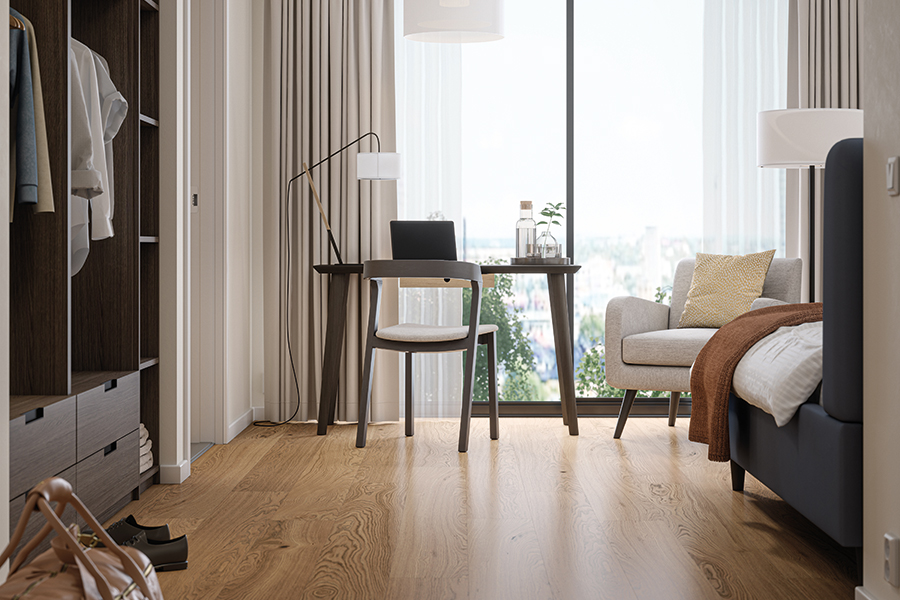 The new Contrast Collection comprises a palette of five different colourways – Desert, Vapor, Silver, Ivory and Granite. These reportedly leverage the existing hues and tones within the wood to create ‘stunning contrasts, while blending with the existing hardened wood 3.0 range. The new range is available in the XL size in Spačva oak. This type of oak, which is sustainably sourced from Croatia with FSC certification, is renowned for its stunning beauty and distinctive grain. This vibrant new range was created through the fusion of technology and ageless craftsmanship and suits residential and heavy-traffic commercial environments’.