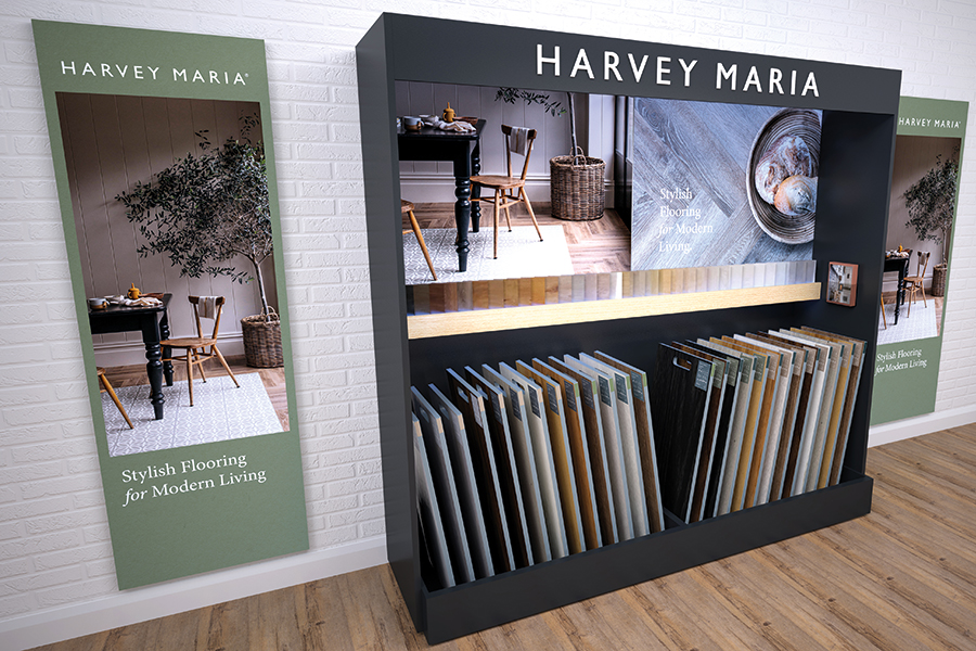 HARVEY Maria will be adding a new Design Studio to its point-of-sale portfolio. What it describes as the stylish, eye-catching display will, it says, appeal to retailers looking for a premium luxury vinyl tile offering for its customers.