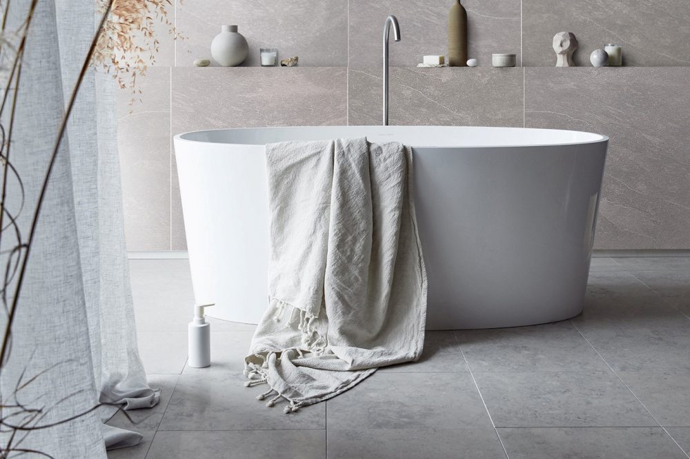 Says the company: ‘Available in a contemporary range of designs and different tile sizes, the collection brings a versatile, durable, and easy way to renew bathroom interiors. With fast installation and easy maintenance, the panels can withstand humid and moist environments, making them perfectly suited for bathroom and wet-room use.’