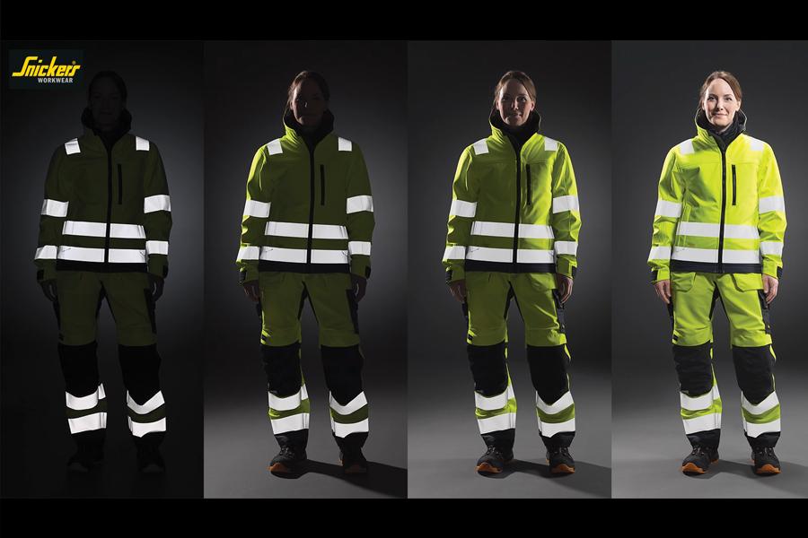 In Snickers Workwear’s ISO-compliant High-Vis clothing, fluorescent colours reportedly make you easier to see at dawn, dusk and during the day, while reflective stripes make it easier to see you in dim and dark conditions.