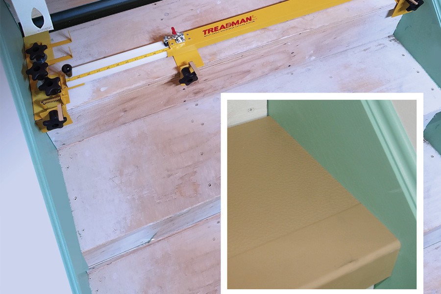 Fitting a one-piece step-up riser tread requires the Treadman ‘One Piece Step/Riser Template Kit’ . Complete video instructions can be viewed on YouTube by searching ‘Treadman’.