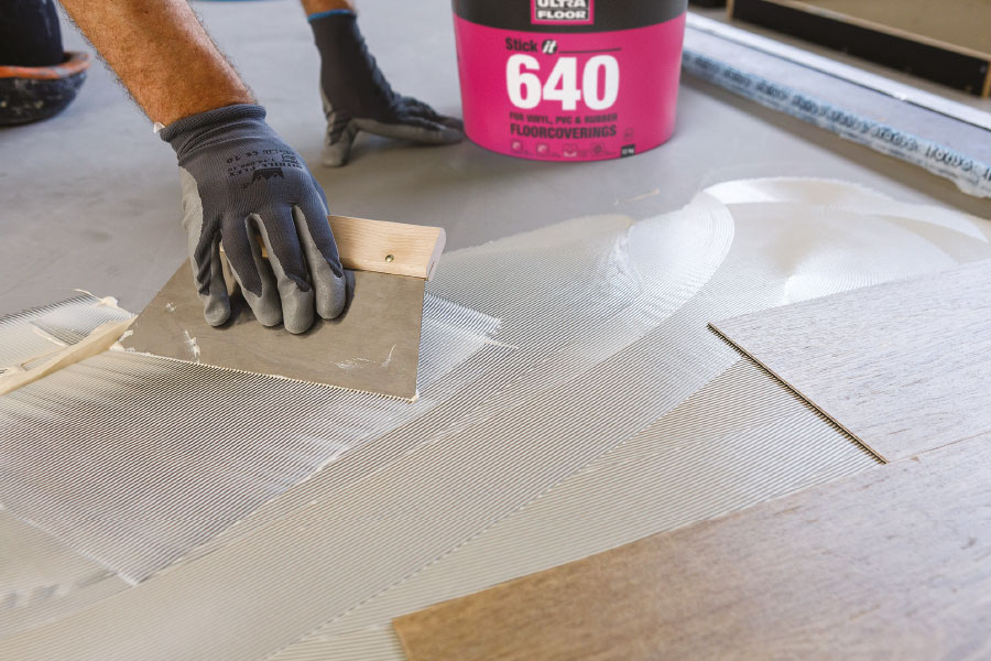 ‘When installing dimensionally stable LVT, PVC sheets, planks or tiles, UltraFloor recommends Stick IT 543. This pressure-sensitive adhesive performs exceptionally well in high-temperature environments and areas exposed to direct sunlight, making it the perfect choice for shopfronts, conservatories and other glazed spaces.