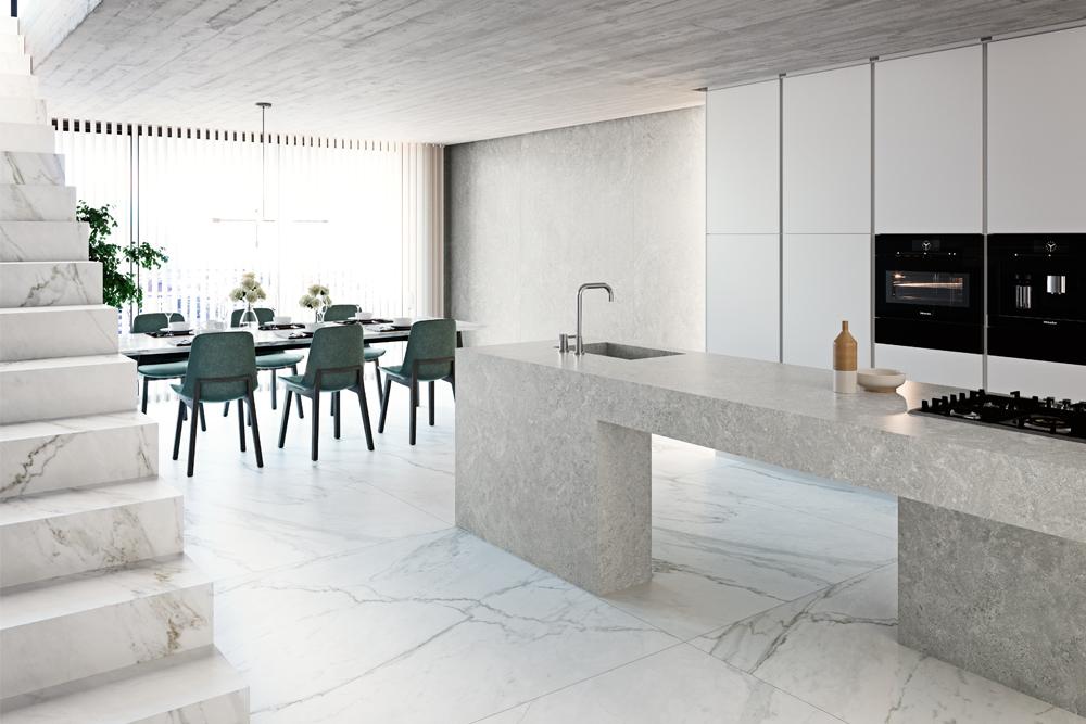 The company continues: ‘At 6mm, 12mm or 20mm thick and available in a large slab format for ease of installation with minimal joins, the technical characteristics of Ceralsio give it a superior level of resistance to wear and tear. Suitable for use as a flooring option for indoor and outdoor spaces due to its resistance to ultra-violet rays, the surface will remain colourfast despite the passing of time and even when subject to direct sunlight. Highly resistant to knocks and impacts, the flooring can be chosen with peace of mind for busy areas including hotel lobbies, bars, and restaurants.’