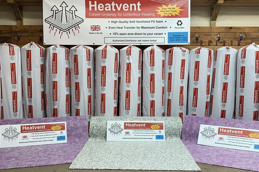 ‘HEATVENT’ is reportedly the new name in luxury carpet underfloor heating underlay. It’s a soft ventilated PU foam carpet underlay designed for use in UFH applications. It has more than 100,000 vent holes per roll, which gives a 10% open area direct to your carpet.