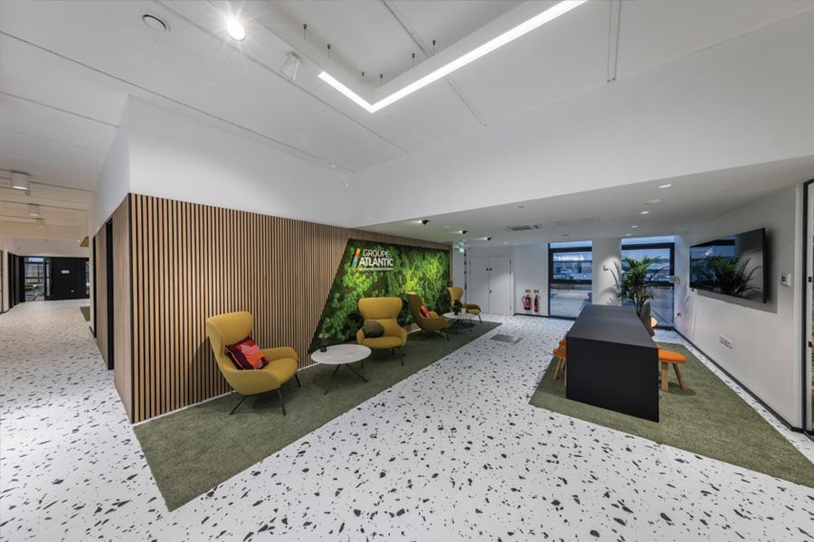 Project designer and principal contractor RFD Interior Architecture has reflected Groupe Atlantic’s ambition to create a greener built environment with a comfortable yet practical interior in a biophilic style that supports health and wellbeing, meeting its sustainability brief by focusing on decarbonisation and recycled materials.