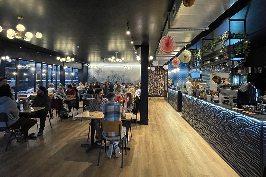 Craft Republic has an urban-style interior design, with an eye-catching wave-effect clad bar and wood-effect LVT flooring installed throughout. Prior to the installation of the resilient floor, the power-floated concrete subfloor was ground back to level and open porosity. The surface was then primed with ‘one-component rapid-drying PVDC-based Mapeproof Primer, to suppress any residual moisture, and levelled with Latexplan Trade – a two-component levelling and smoothing compound’.