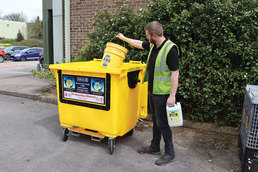 ‘F Ball plastic buckets and the company’s five and 20 litre plastic bottles used for liquids, primers and tackifiers can be recycled via the scheme. Much of the packaging itself is also manufactured from recycled materials.’
