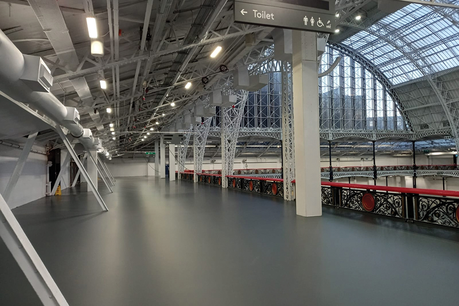 The successful specialist contractor for Olympia Events was Cemplas Waterproofing & Concrete Repairs, and its flooring team carried out the works in phases to minimise disruption.
