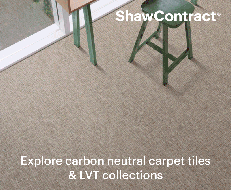 ‘At the end of its useful life, Interlaced carpet tiles can be returned via Shaw’s free-of-charge re[TURN] Reclamation Programme, where they are recycled into raw materials for new EcoWorx S carpet tiles. This initiative reduces both carpet tile landfill waste and virgin raw material usage, lowering the overall Global Warming Potential (GWP) of Shaw Contract products.’