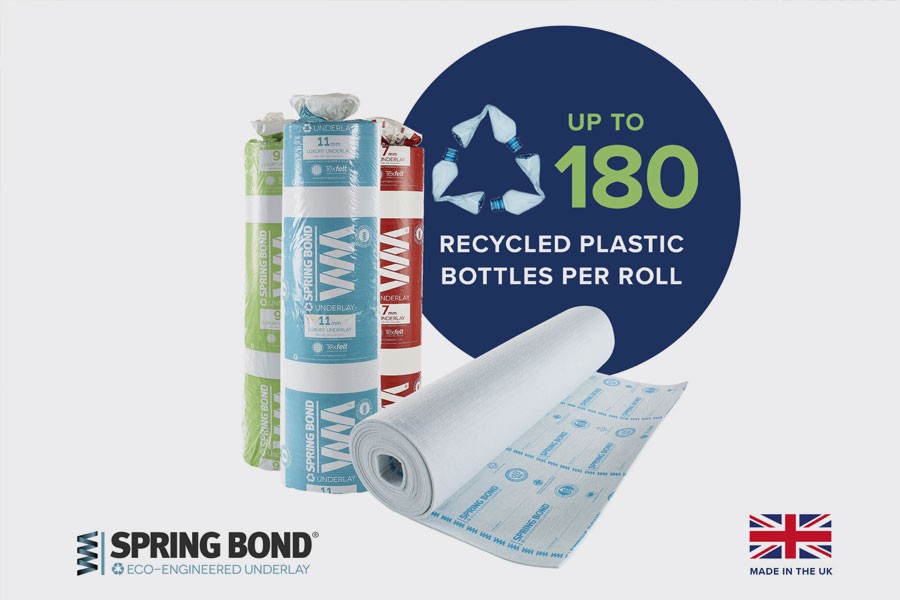 It’s manufactured from PET recycled plastic bottles and is genuinely 100% recyclable after use without the need for added chemicals or bonding agents, meaning Springbond is the ultimate eco-friendly underlay, according to Texfelt. ‘Springbond is easy to cut with no hard lumps, is dust-free and manufactured in 1.5 metre rolls to help minimise wastage during the installation process.’