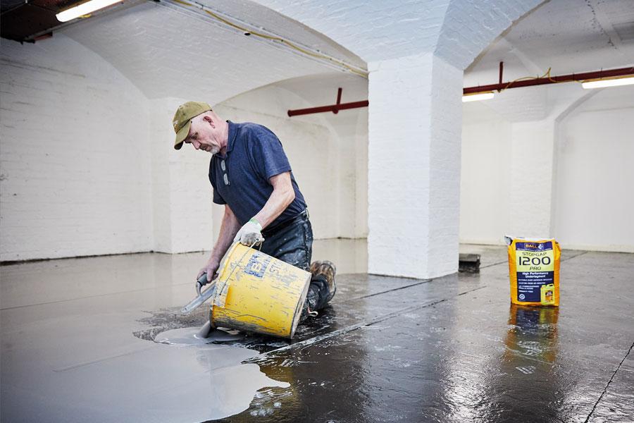 Says the company: ‘Contractors applied F Ball’s Stopgap F77 solvent-free two-part epoxy resin waterproof surface membrane, which isolates residual construction moisture or rising damp where subfloor relative humidity levels are up to 98%, with a single application.