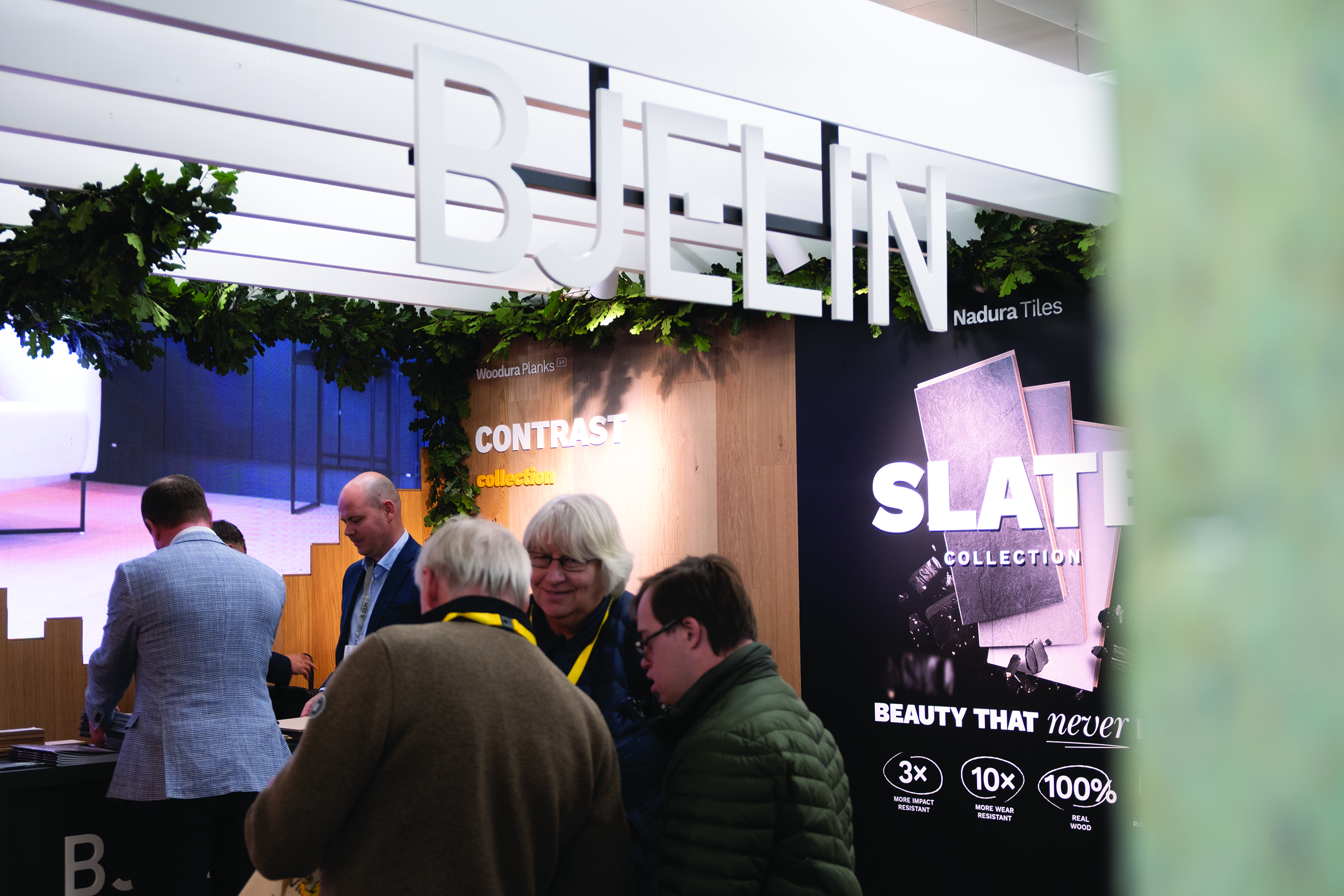 At this year’s Flooring Show, Bjelin highlighted its Nadura wood tile Slate collection, recently introduced to the UK at Clerkenwell Design Week in May. Available in three decors (Eclipse Grey, Storm Grey, and Dew Grey) the tiles measure 280mm x 582mm x 10mm and carry Class 34