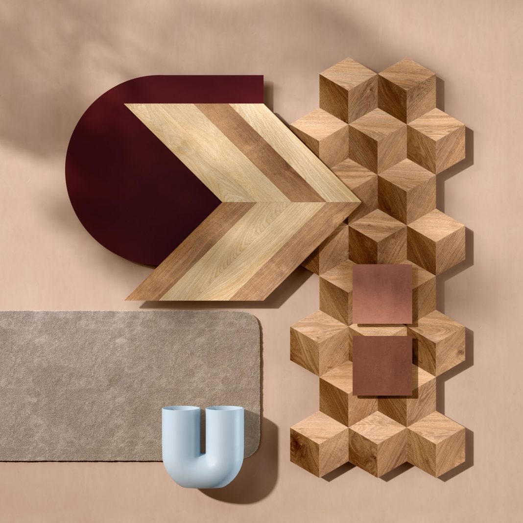 Unilin Flooring has now updated Moduleo Moods for a more accessible library of 70 patterns in new wood and stone effects. In designs such as Chevron Trio, Hexagon Cluster and Diamond Origami, Moduleo’s designers have created a range of standard patterns that show the expressive, striking nature of Moods. Designers can also create their own pattern choosing from any shape in a combination from seven wood and five stone designs.