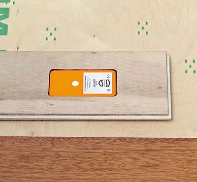 The Floor Sentry is approximately the size of a credit card. It contains sensors on both sides of the device that respond to the RH and temperature of not only the wood flooring plank above but also the concrete slab subfloor or underlayment below. The Floor Sentry connects to the complementary Wagner Sentry app to download stored readings, configure alarm levels, set readings storage intervals, display collected readings in graph form, and more.